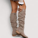Diese kniehohen Stiefel verbinden Boho-Freiheit mit raffinierter Handwerkskunst und ziehen alle Blicke auf sich. Aus weichem Wildleder gefertigt, sind sie die perfekte Balance aus Komfort und Stil.
